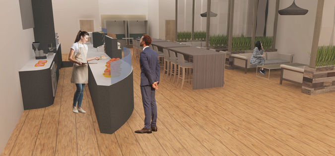 The purpose of this reception, main level is to create an inviting and welcoming area for all clients of Think Design. All those who work there and those who are coming to visit the showroom will be welcomed with a calming and home-like feel when entering the reception area. This reception is not intended to look like any other reception of an office. When entering the Think Design Showroom, you will feel like you are at home. With a modern industrial look, the added materials such as wood and neutral colors will make it feel like home. There is plenty of room to sit and a cafe to enjoy. The is a small sneak peak of what the showroom is like.